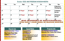 WAR PROGRAM - WARRIORS OF RIGHTEOUSNESS IBADAN NIGERIA - Wednesday 22nd - Sunday 26th Oct 5:30pm daily (Sunday 9am)